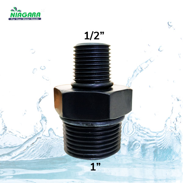 Konektor Filter model Double Nipple dengan male drat/thread 1″ ke 1/2″. Dilengkapi dengan o-ring. Cocok digunakan untuk perangkat filter air anda.