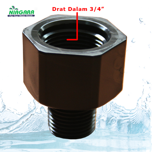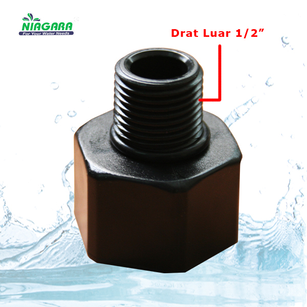 Konektor filter Drat Dalam 3/4 Inch, Drat Luar 1/2 Inch