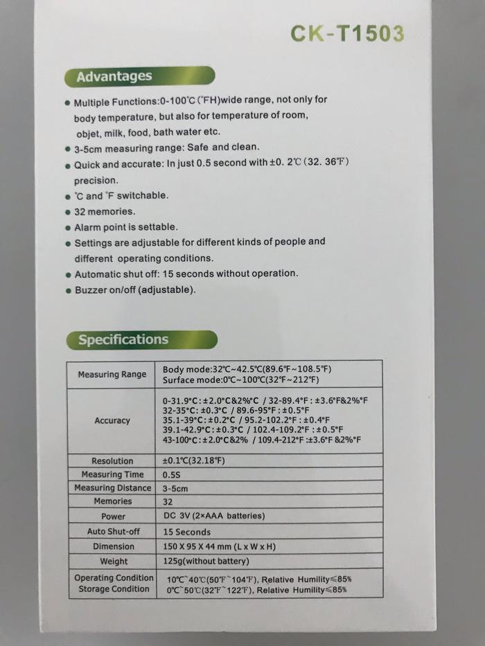 Thermometer Gun Multi Fungsi bisa untuk mengukur suhu badan dan suhu object/ruangan. Jarak pengukuran 3-5 cm. Akurat dan hasil yang cepat. Hanya 0.5 detik langsung mendapatkan bacaan suhu.